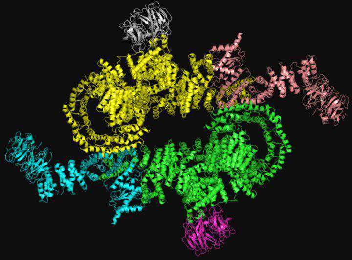 肌动蛋白[30][31][32]构成我们肌纤维中的细肌丝,肌球蛋白[33][34][35][36]构成粗肌丝。例如人心肌中的肌球蛋白复合物: