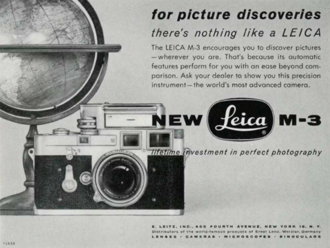 1954:设有插刀式卡口接环和高放大率的测距取景器的LEICAM3推出,而应用新的快速过片杆亦令胶片过片变得格外轻易。