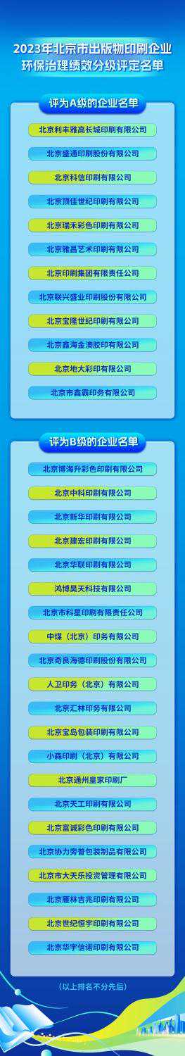 2023年北京市出版物印刷企业环保治理绩效分级评定名单