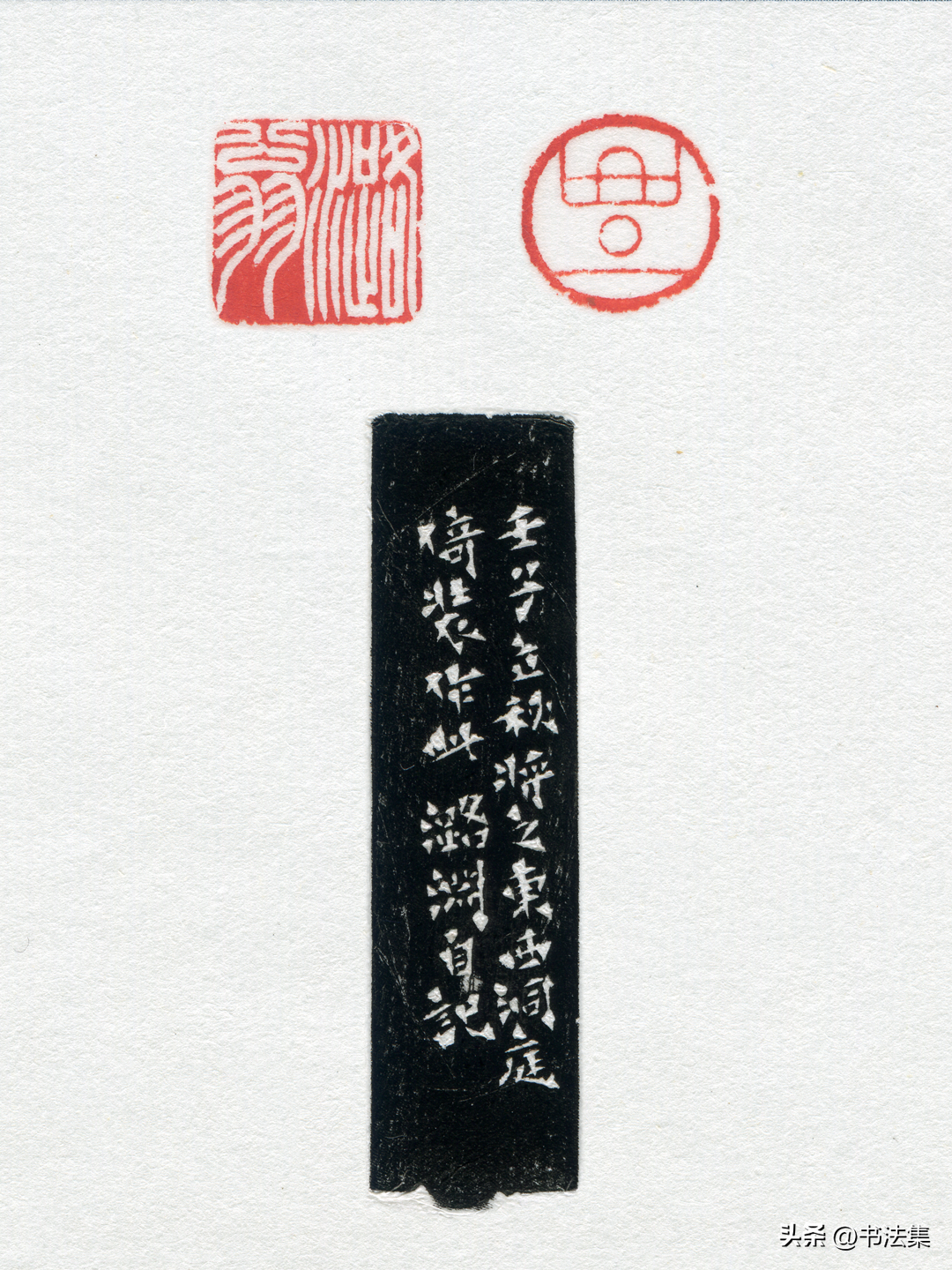 爲王蘧常刻八分對章,”王蘧常”朱白相式,款曰:”瑗仲先生名印,乙卯春月潞淵刻。”又古璽朱文印,款曰:”潞淵制於滬上静樂簃。”