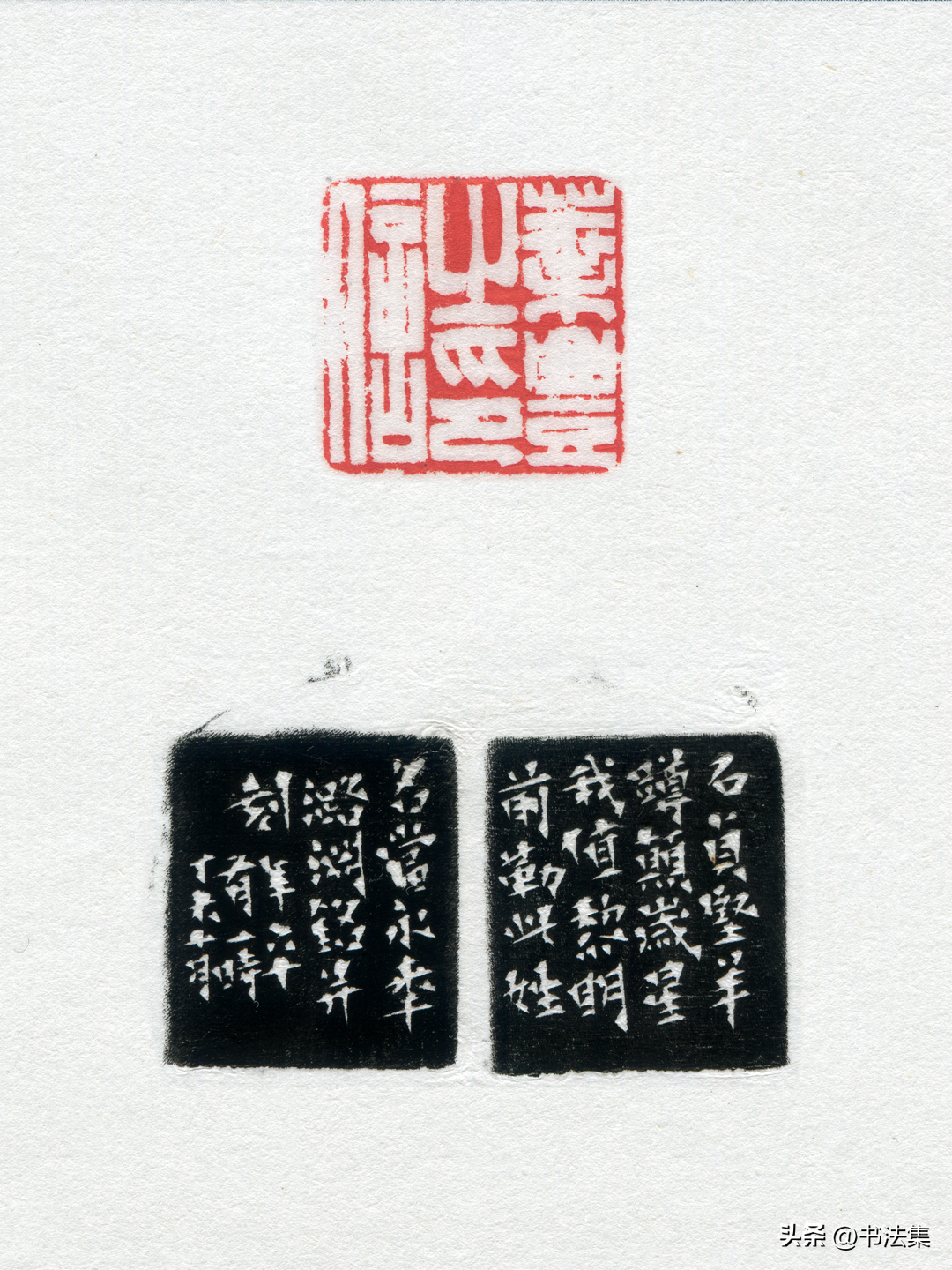 爲朱屺瞻刻朱白相間名印,爲石瓢和尚刻”釋若瓢”,爲程十髮刻白文”步鯨樓”,爲吴作人刻朱白相間名印。