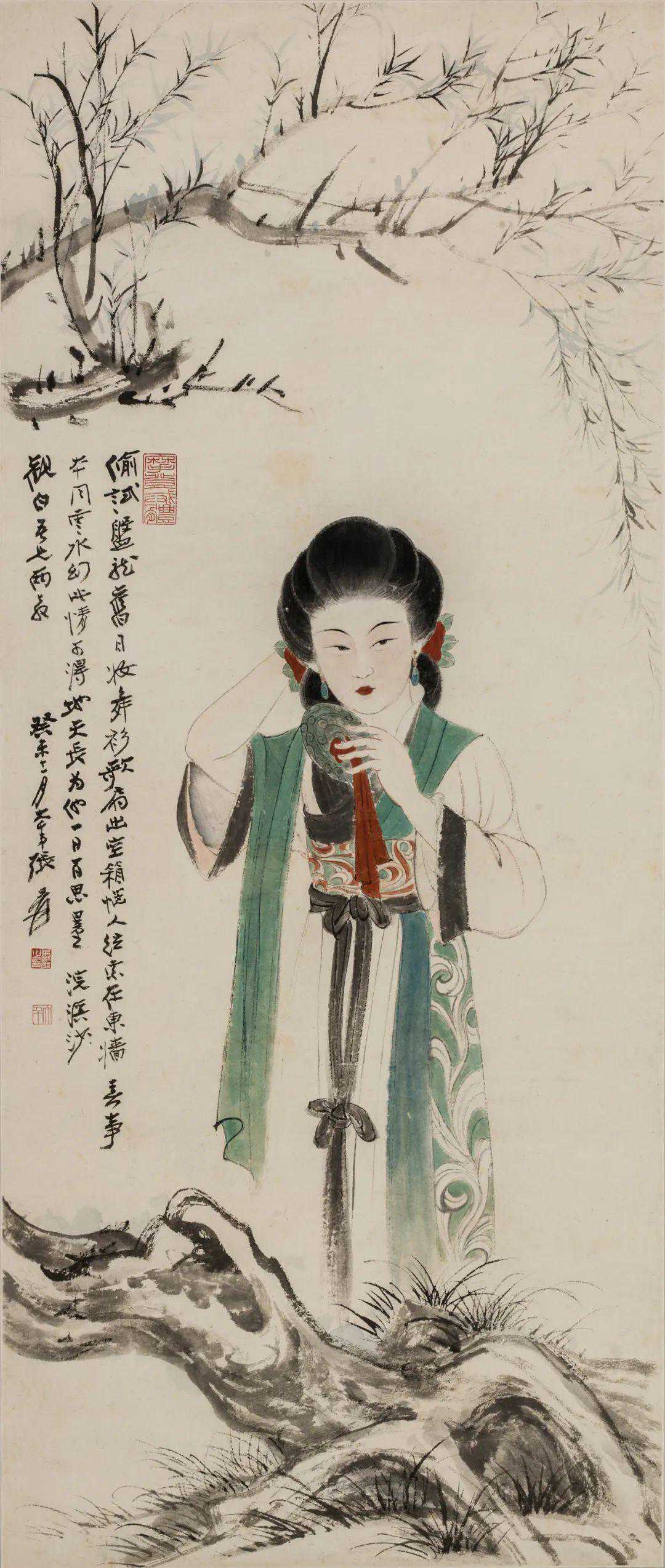 张大千《对镜理妆图》114cm×48.5cm1945年