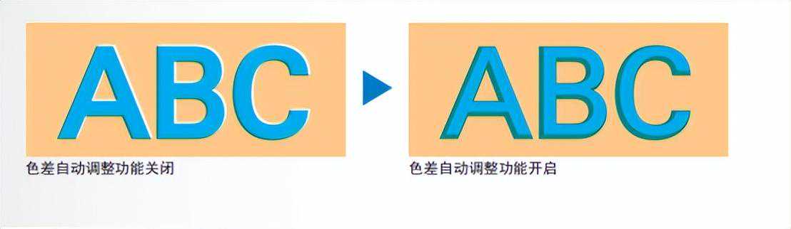 柯尼卡美能达C558新增色差自动调整功能,该功能通过叠加打印的方式,消除文字和背景之间的色差,使文字的打印效果更好。该功能同时适用于PCL和PS打印驱动。