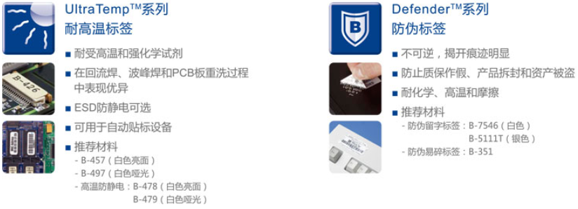 高品质标签耐受最严苛的应用环境,如用于汽车电子设备PCB追溯的高温标签系列;