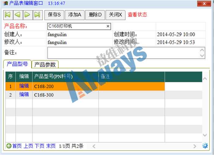 根据产品具体型号、产品具体参数将客户产品相关信息添加入MASO标识管理追溯系统,对已有客户产品信息进行实时编辑修改,并将产品信息与标签模板相对应关联。