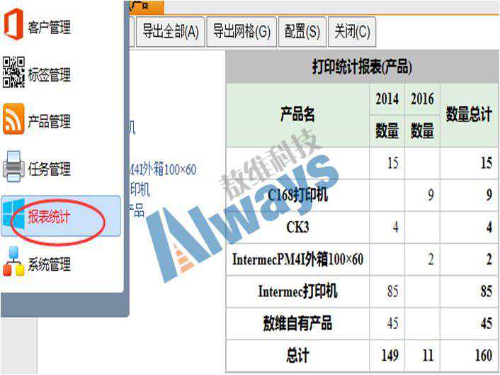 统计标签具体打印数量,提供多种报表格式,按照日期或产品进行分类统计。
