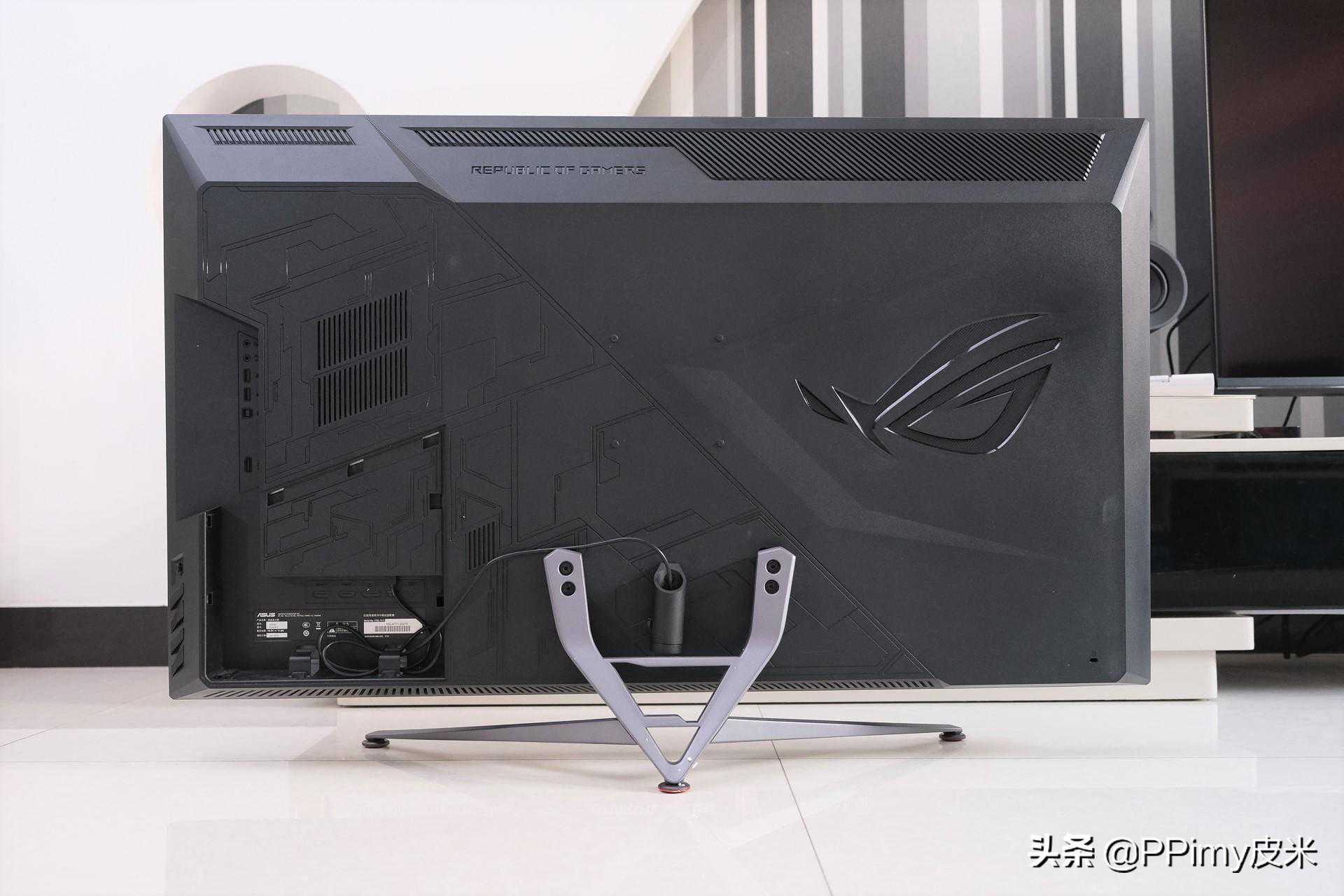显示器还是厚度还是挺厚的,毕竟要实现4K120Hz,HDR600,450cd/m2这些凶猛的参数,显示器必须要预留充足的散热空间。相比起某些加装风扇的,我宁可选择厚点,嘿嘿~