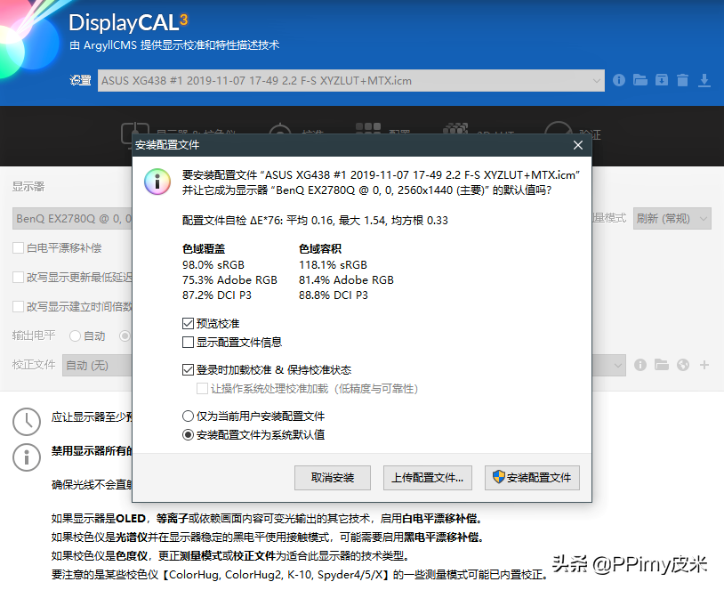 色准表现非常好,平均△E为0.45,最大△E也仅仅只有1.11,△稍微超了一点,主要表现在色温稍微偏冷了一点,稍微调教就好了,影响不大。