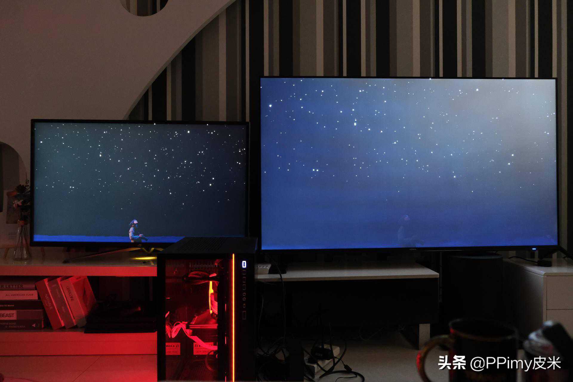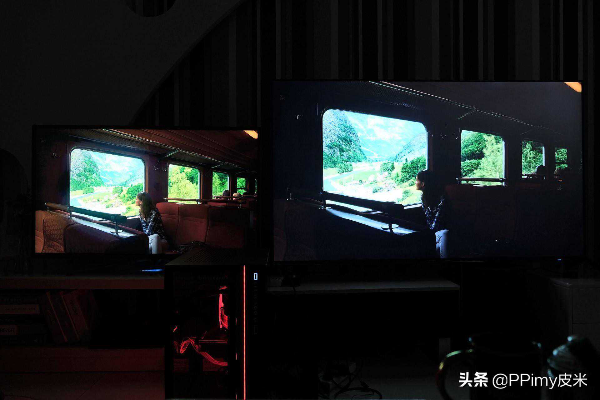 为了更好让大家感受HDR600的魅力,所以用旁边支持HDR10的电视做了个简单的对比,差距简直不要太明显↓