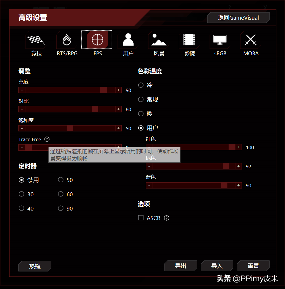华硕专门还为其定制了一个DisplayWidget软件,可以让你通过HDMI或是DP直接控制显示器,还可以针对不同的游戏/软件,自动切换不同的显示模式,非常方便。