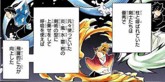 缘一自创始祖日之呼吸并传授给鬼杀队,鬼杀队虽然没有人能够学会日之呼吸,但在缘一的教导之下,柱们结合自身的剑术与体质衍生出了各自的呼吸法流派,鬼杀队在呼吸法上开始拥有了传承,一个剑士学会呼吸法前后的实力差距是很大,鬼本身的能力与体质就比人类强大,呼吸法能够提升剑士的体质与攻击力,通过呼吸法的招式还能化解鬼的攻击,在完成呼吸法全集中常中后,使用者的能力就会提升一个级别,柱级别在没有呼吸法之前是很难斩杀下弦级别的鬼,在拥有呼吸法之后才转变成柱能轻松斩杀下弦鬼。