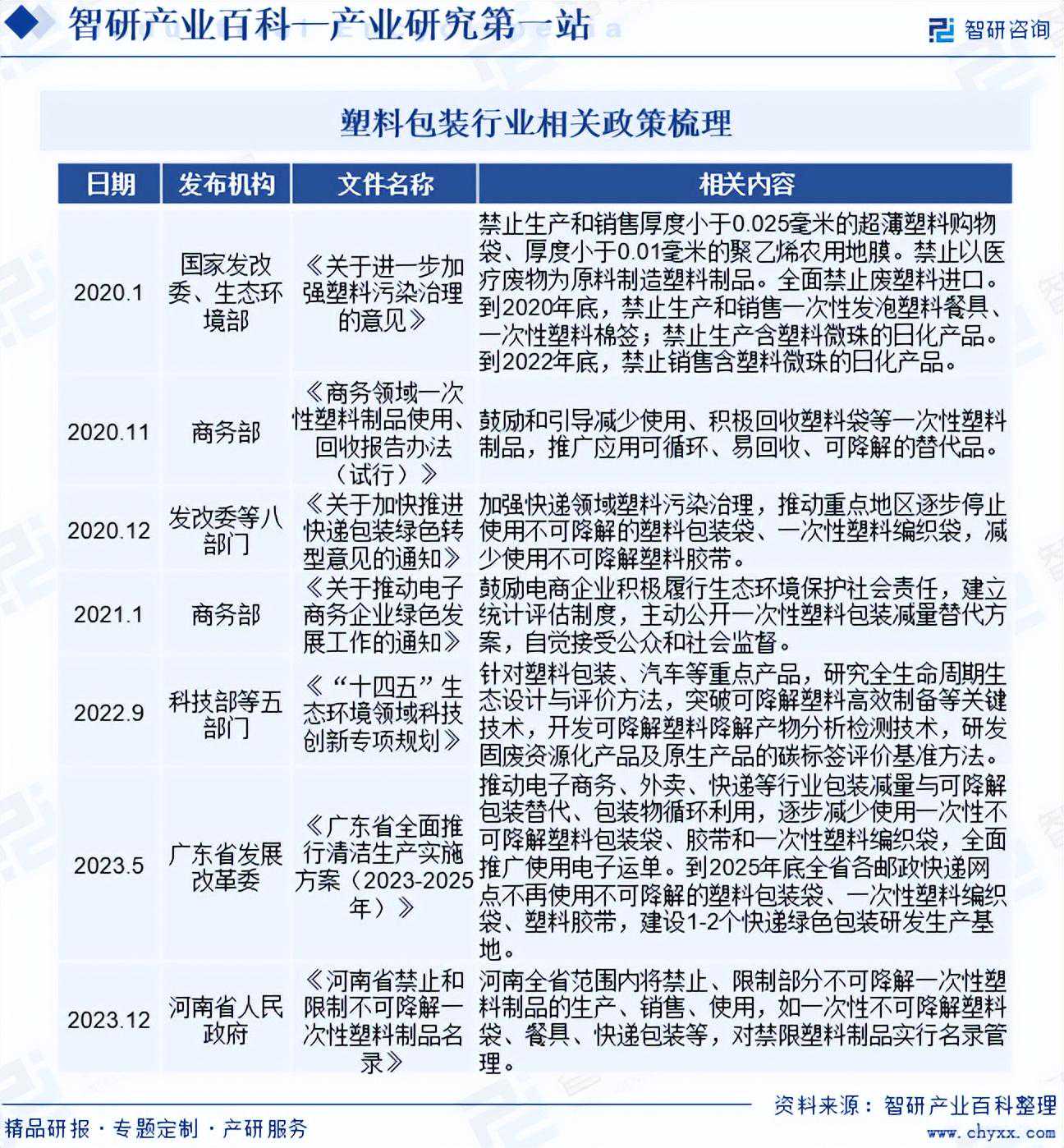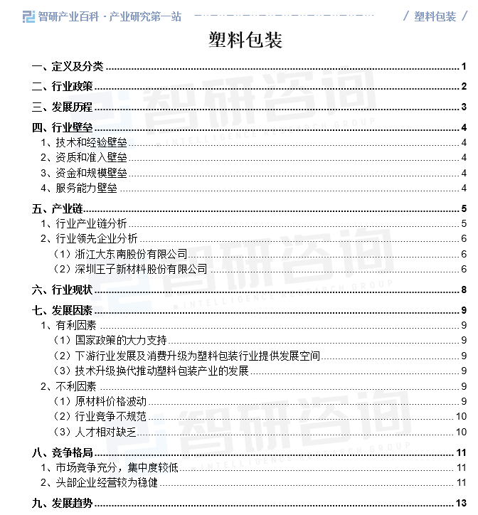 智研产业百科是智研咨询推出的产研工具平台,致力于为您提供全方位的百科式产业信息查询服务。智研咨询践行用信息驱动产业发展的企业使命,完善和丰富企业方法论,依托产业百科平台提升信息价值,持续为行业发展及企业投资决策赋能。塑料包装产业百科作为塑料包装产业一站式系统化研究工具,全面归纳了塑料包装产业知识信息,内容涵盖塑料包装产业的定义、分类、政策、产业链、竞争格局、发展趋势等,并依靠信息技术建立智能互链的行业知识图谱,为行研从业者及相关投资者提供深入的洞察力和全面的信息。