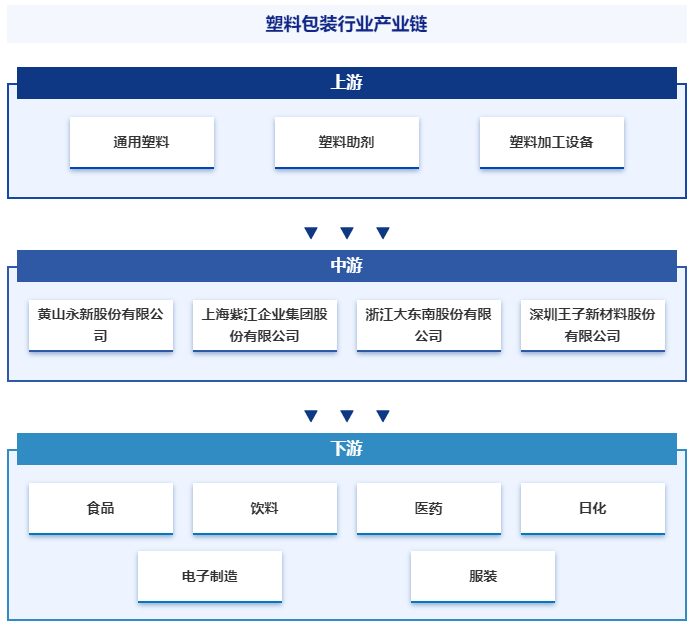塑料包装是指以高分子树脂为主要材料,在增塑剂、发泡剂、稳定剂等添加剂的帮助下,通过吸塑、注塑、吹塑、挤出等成型工艺加工而成的具有包装、收纳、保护、缓冲、隔离等用途的塑料制品。塑料包装可分为塑料包装膜、塑料编织品、包装箱及容器、泡沫塑料和包装片材等。由于具有方便流通、保护商品、提升产品附加值等优点,塑料包装制品广泛应用于化工、食品、医药等领域,是包装材料中占比第二高的品类,仅次于纸包装。