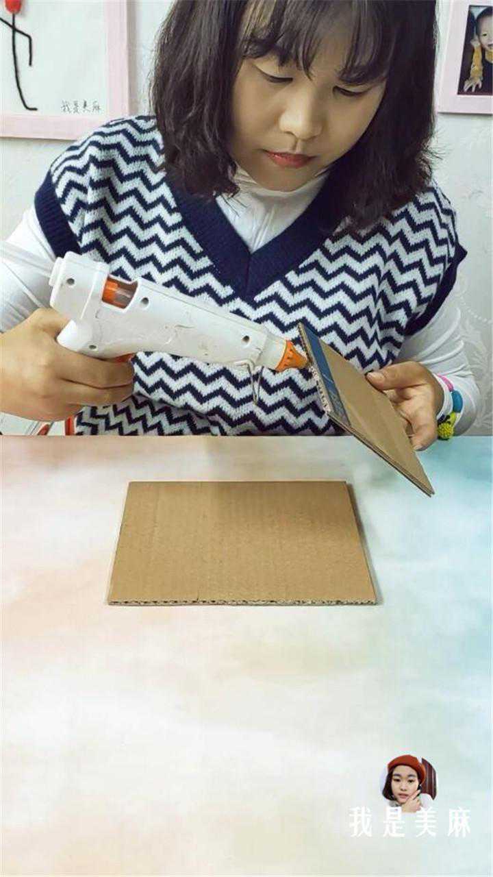 首先,准备一块16*18厘米的底板,两块11*16厘米的侧板,用热熔胶分别粘在底板的两侧。