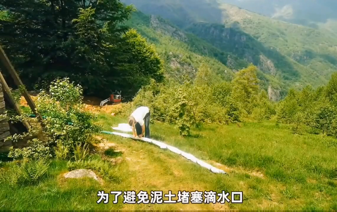 除此之外还要在沟渠底部铺装排水管,渗下来的水滴入这些小口,而后通过环绕一圈的管道排向山谷。为了避免泥土堵塞滴水口,管子周围会用过滤布进行包裹,可谓是安排的明明白白。等到这些全部铺装到位后就能着手进行回填了。