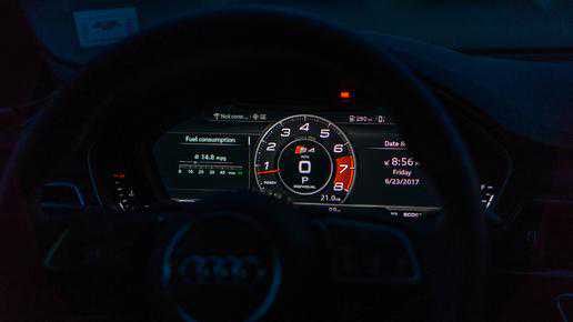 我觉得目前Audi最大的优势可能就是VirtualCockpit了。屏幕细腻,而且显示信息很是充分,让你产生不怎么需要边上中控那块屏幕的想法。图中这个设定是我比较钟爱的,中间转速时速显示,两侧显示些行车信息。