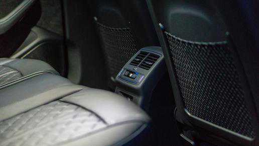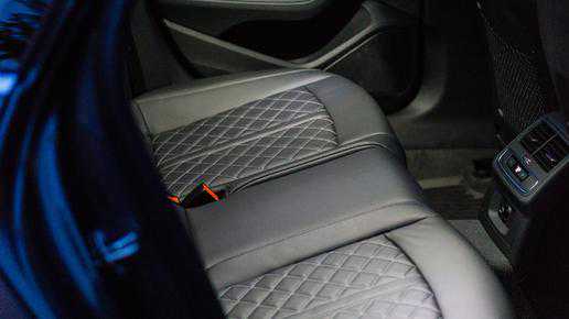 座椅方面,选了Nappa皮就能得到这种网格状的皮面,我个人觉得很好看。选择座椅通风之后你就可以跟Nappa皮说再见了,这也是我没选座椅通风的原因之一,搞不懂为什么。另外,选择了座椅通风之后,你也就不得不跟前座椅按摩说再见了。没错,S4的标配前座椅是带按摩的。后排的空间大小,我一米七,坐在我的驾驶座位后面有一个拳头半的距离。