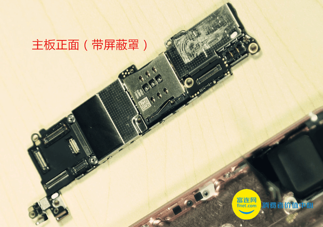 接下来是主板,将所有能看见的螺丝钉都卸掉之后,就可以将主板撬下来。iPhoneSE的主板还是我们熟悉的长条双面主板,不过由于屏蔽罩是焊死的,给我们造成了相当大的麻烦,只能通过暴力破拆的方式。按照先易后难的原则,我们决定最后再去搞它。