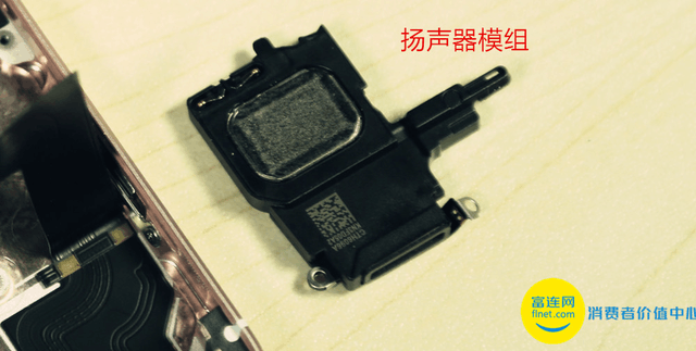 此后是扫清机身剩下的一些元件,首先是右下角的扬声器,个头比较大,和5s比也没什么变化。
