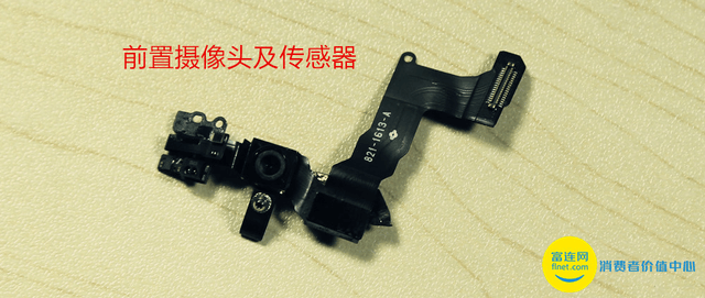 接下来的是前置摄像头和其他传感器,和下部接口们一样都是彼此相连的就一块被拆了下来。需要注意的是SE的前置摄像头同样没有升级,仍是和5s一致的120万像素iSight摄像头。