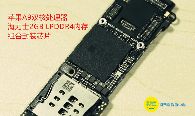 最后轮到难啃的主板,我们为此动用了撬棍、镊子和钳子才终于攻破屏蔽罩防线,让其内部芯片一览无遗。主板正面最引人瞩目的就是A9处理器,是和2GB海力士LPDDR4内存封装在一起,上面涂了一些石墨粉材料做均热,需要擦一擦才能看到芯片上的。