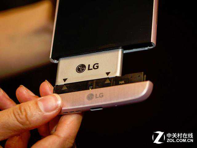 模块化设计可以说是LGG5最吸引人的地方G5的模块采用了抽拉的方式,用户可以将底部抽出来,再将电池卸下并安装到其它模块上。目前可选的模块有相机模块和音频模块。其中相机模块配备了额外的快门按钮和拨轮,而且电池容量也会有所增加,更加适合拍摄场景下使用。而Hi-Fi音频模块则是由BO设计生产的,可以带来更好的听觉体验。