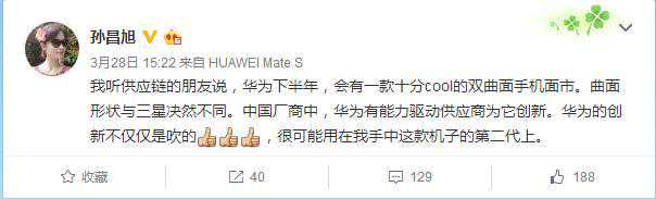 或下半年推出传华为MateS2将配双曲屏(图片引自新浪微博)