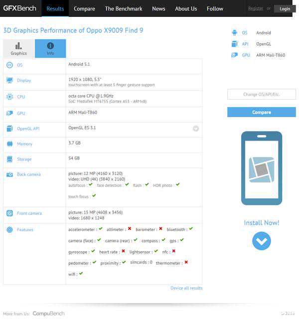 OPPOFind9配置信息(图片引自GFXBench)