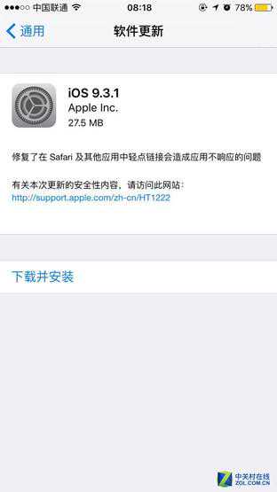 从此次升级的详细信息来看,更新只有27.5MB,描述上也只写着“修复了在Sarari及其他应用中轻点链接会造成应用不响应的问题”。