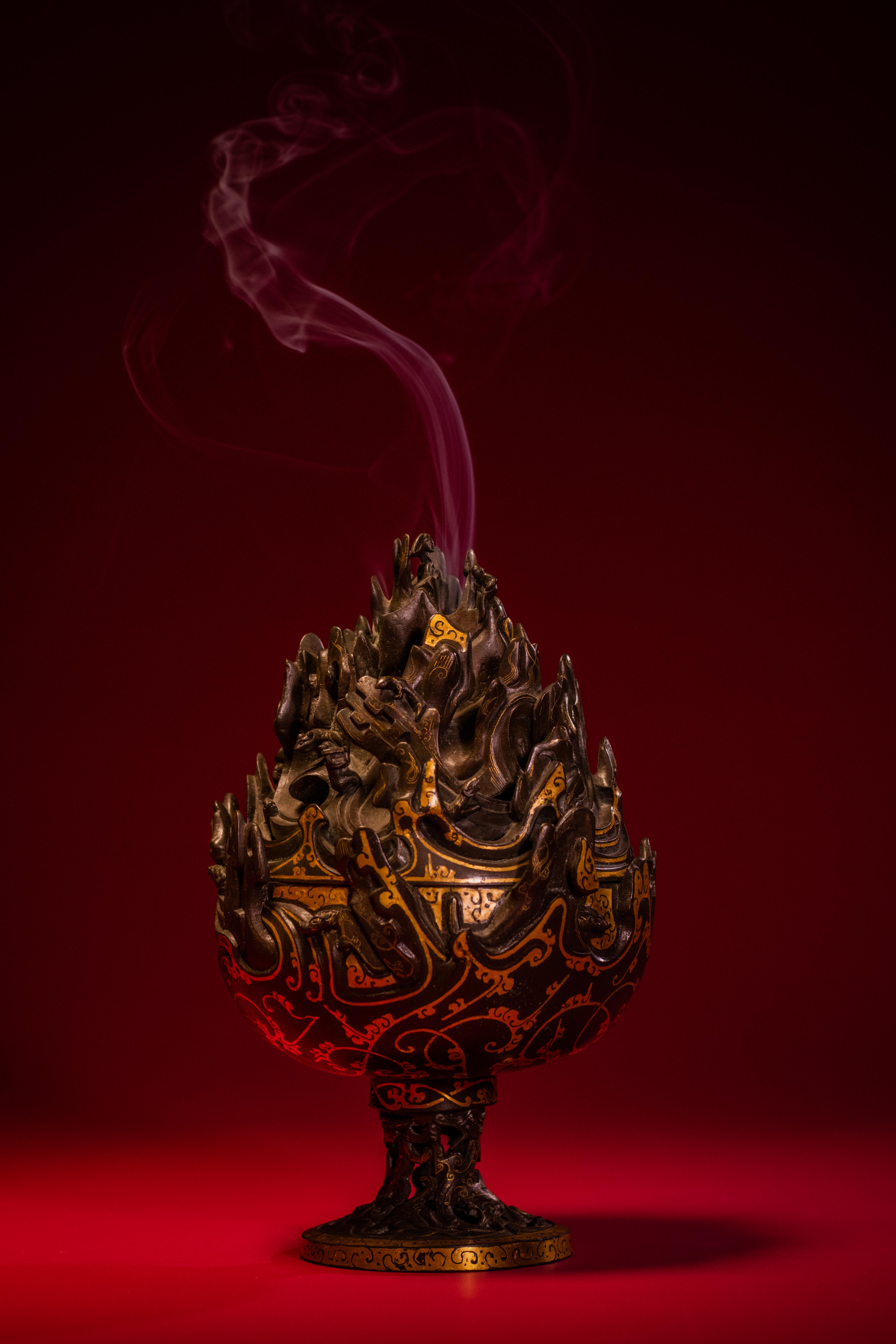 熏炉的炉盖被铸成重峦叠嶂的模样