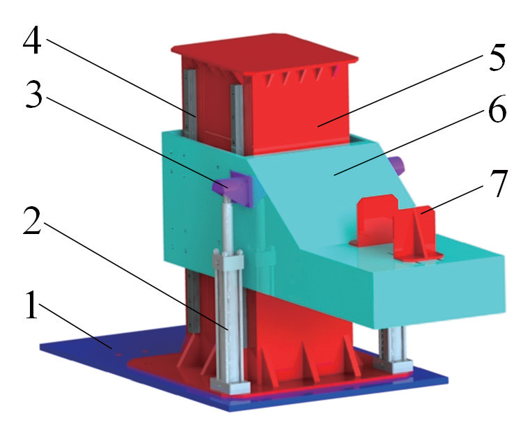 1.XZ连接台2.液压缸3.连接座4.导轨5.竖直主体6.托举臂7.限位座