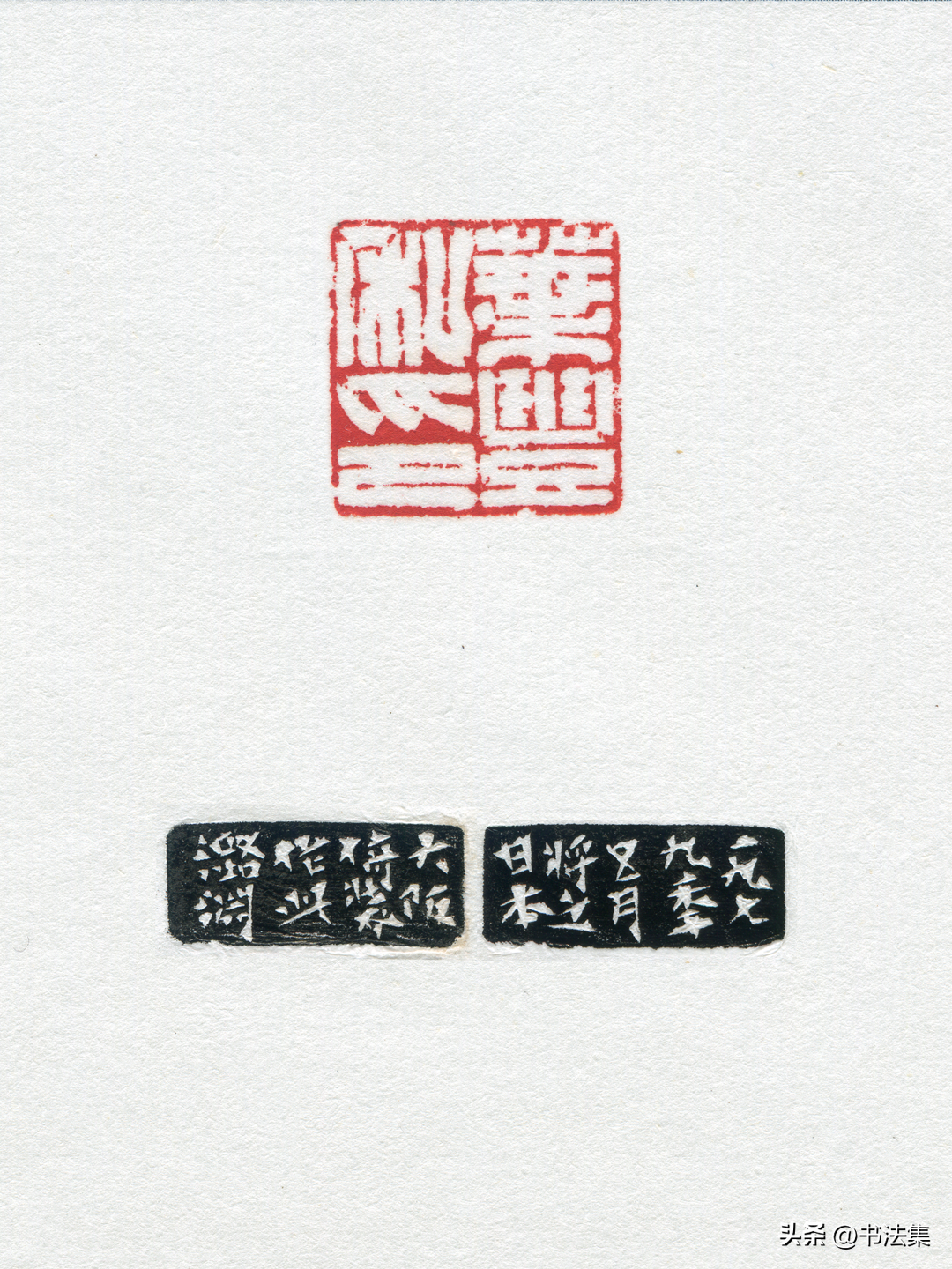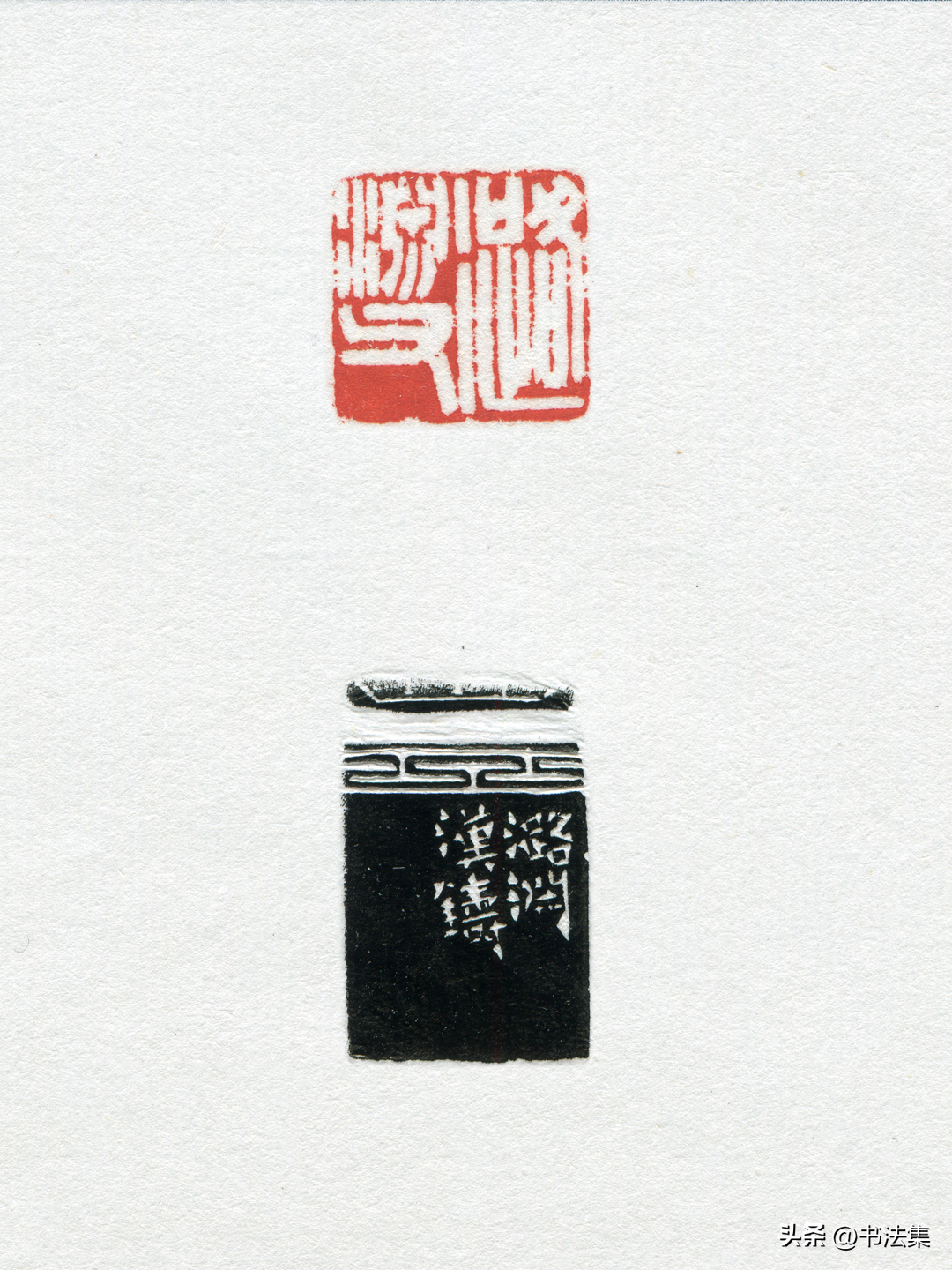 爲王蘧常刻八分對章,”王蘧常”朱白相式,款曰:”瑗仲先生名印,乙卯春月潞淵刻。”又古璽朱文印,款曰:”潞淵制於滬上静樂簃。”