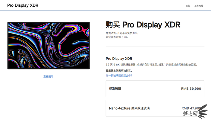 同期推出的ProDisplayXDR显示器分为标准玻璃和纳米纹理玻璃两个版本,售价分别为39999元/47999元,与之搭配的ProStand显示器支架售价7799元,VESA支架转换器售价1599元。这款显示器尺寸为32英寸,分辨率6016×3384,像素密度达到了218PPI,峰值亮度能达到1600nits,显示效果十分优秀。