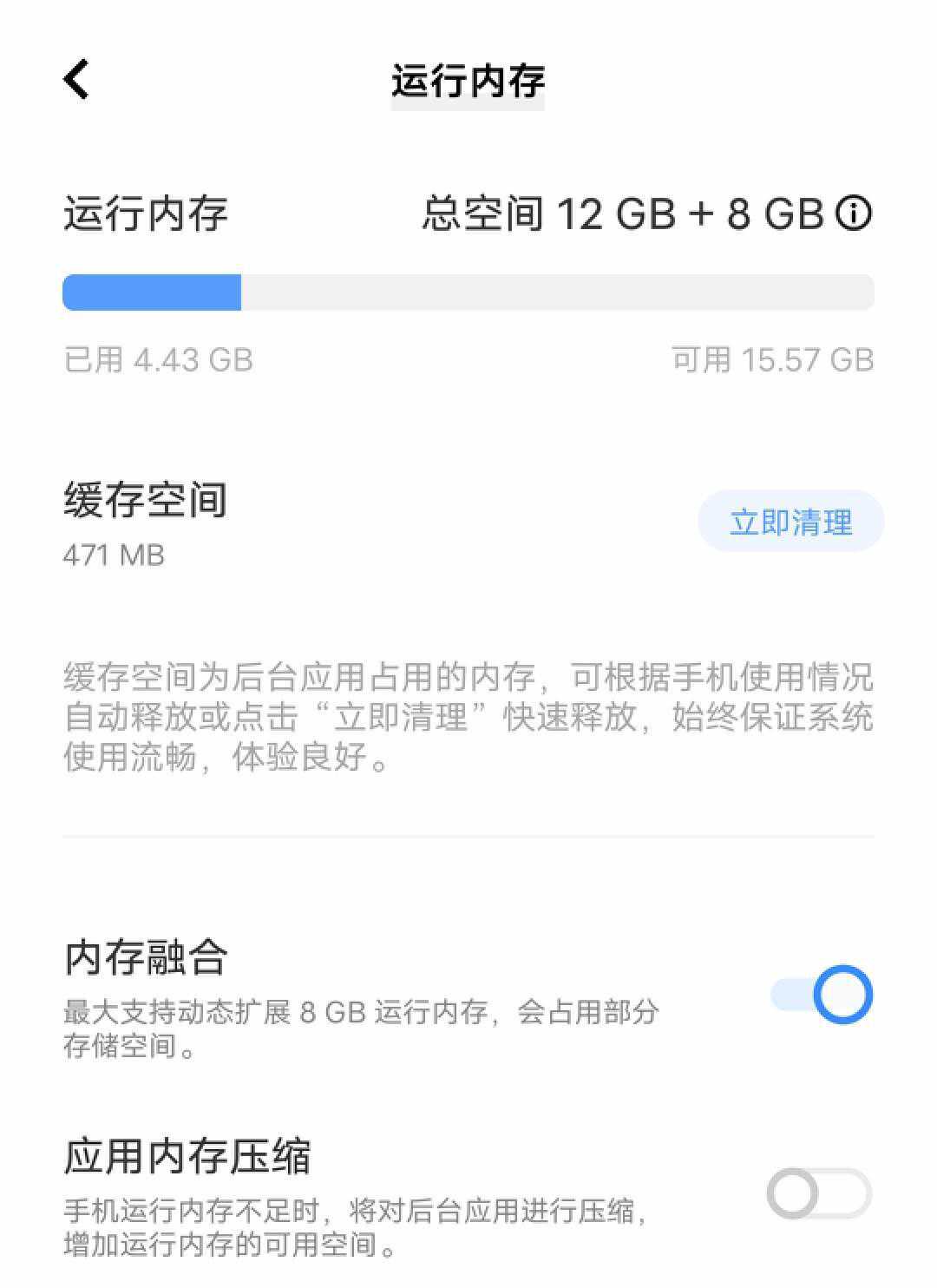 在存储部分,vivoY78+最高提供了12GB+256GB大内存,并且还支持内存融合3.0技术,最高支持内存融合+8GB,通过调用部分ROM空间给RAM使用,使得用户获得更大的RAM空间,后台保活数量最高达29个。
