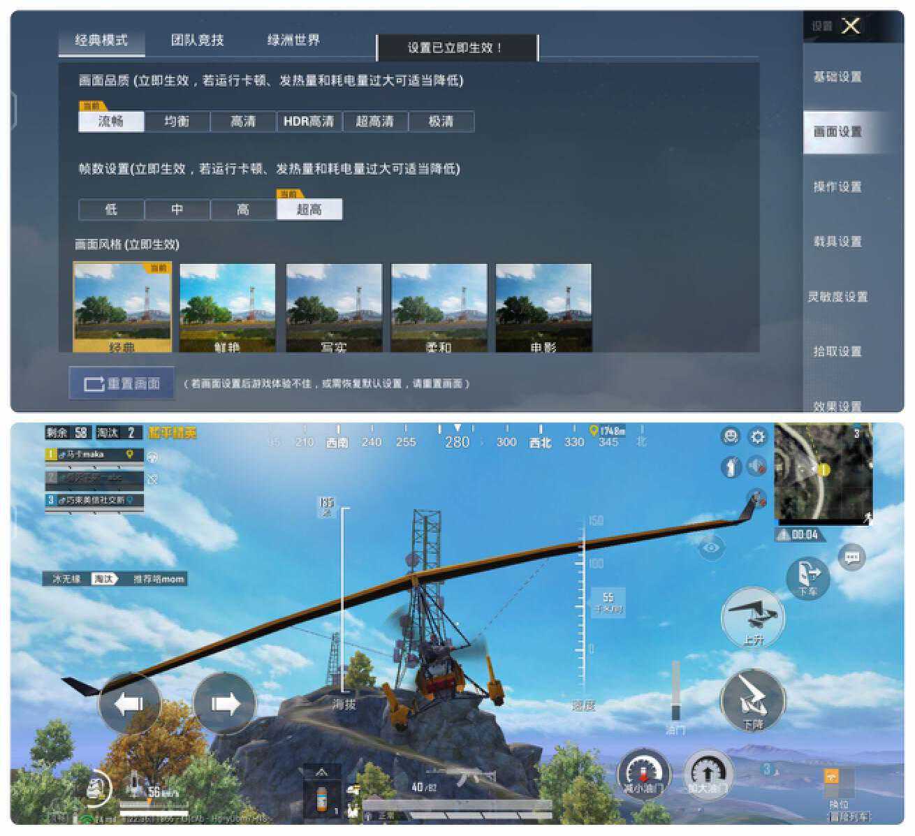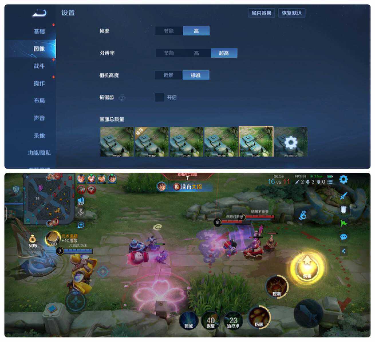 《王者荣耀》选择的最高画质+最高帧率(60帧)。