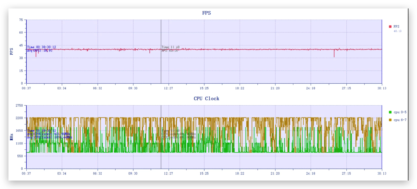 如下图所示,在游戏过程中,vivoY78+几乎全程稳帧运行,全程无降频,而实际体验的也相当不错,几乎没有肉眼可见的掉帧现象。