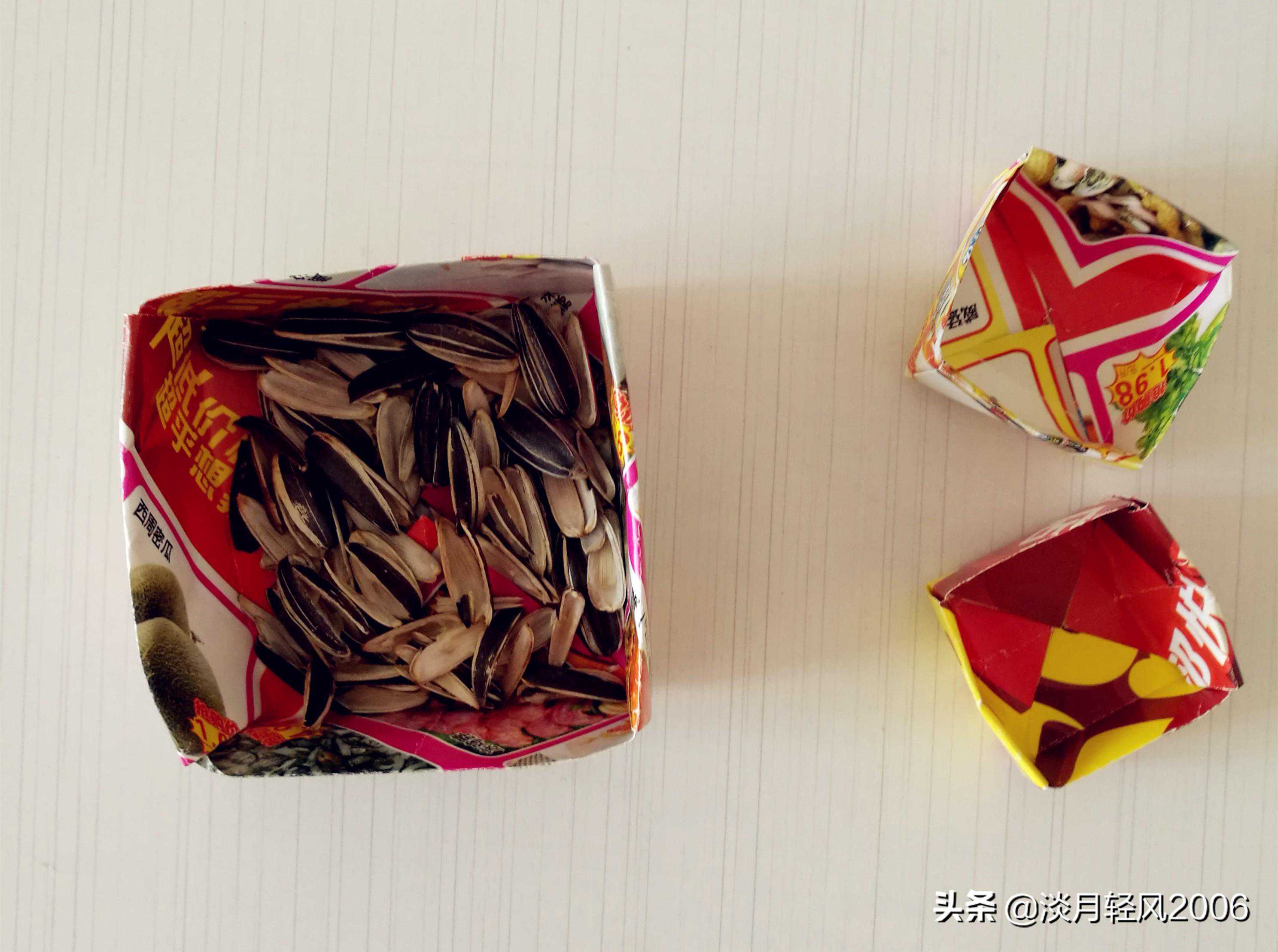 用这种简单的折法,也可以用废纸顺手折一个这样的小盒,吃零食时当垃圾盒