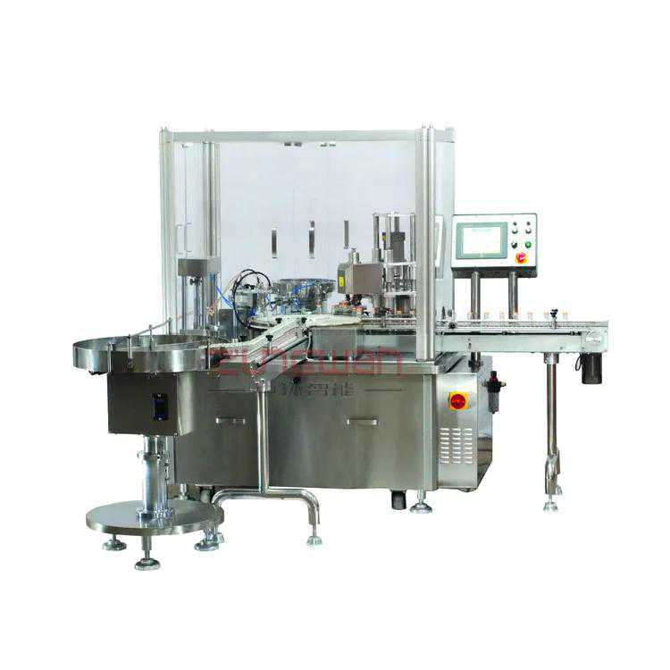 主要特点:ZHGNX-III机械手式双头电子烟油灌装旋盖机充分运用了机械原理,光电技术,气缸技术。新型专用机械手,保证内塞和外盖可靠地进入瓶口,从而实现完全自动化。包装误差小、装机调整简便、设备清洗方便、维护保养简单。