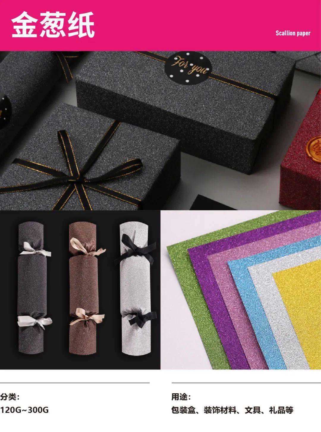 金葱纸是把金葱粉喷涂在纸上形成产品独有的磨砂,闪亮的效果,具有很强的色彩效果跟磨砂触感,配合光线的折射完全颠覆了传统的特种纸概念与印象,表现出其他材料无法取代的闪亮效果。