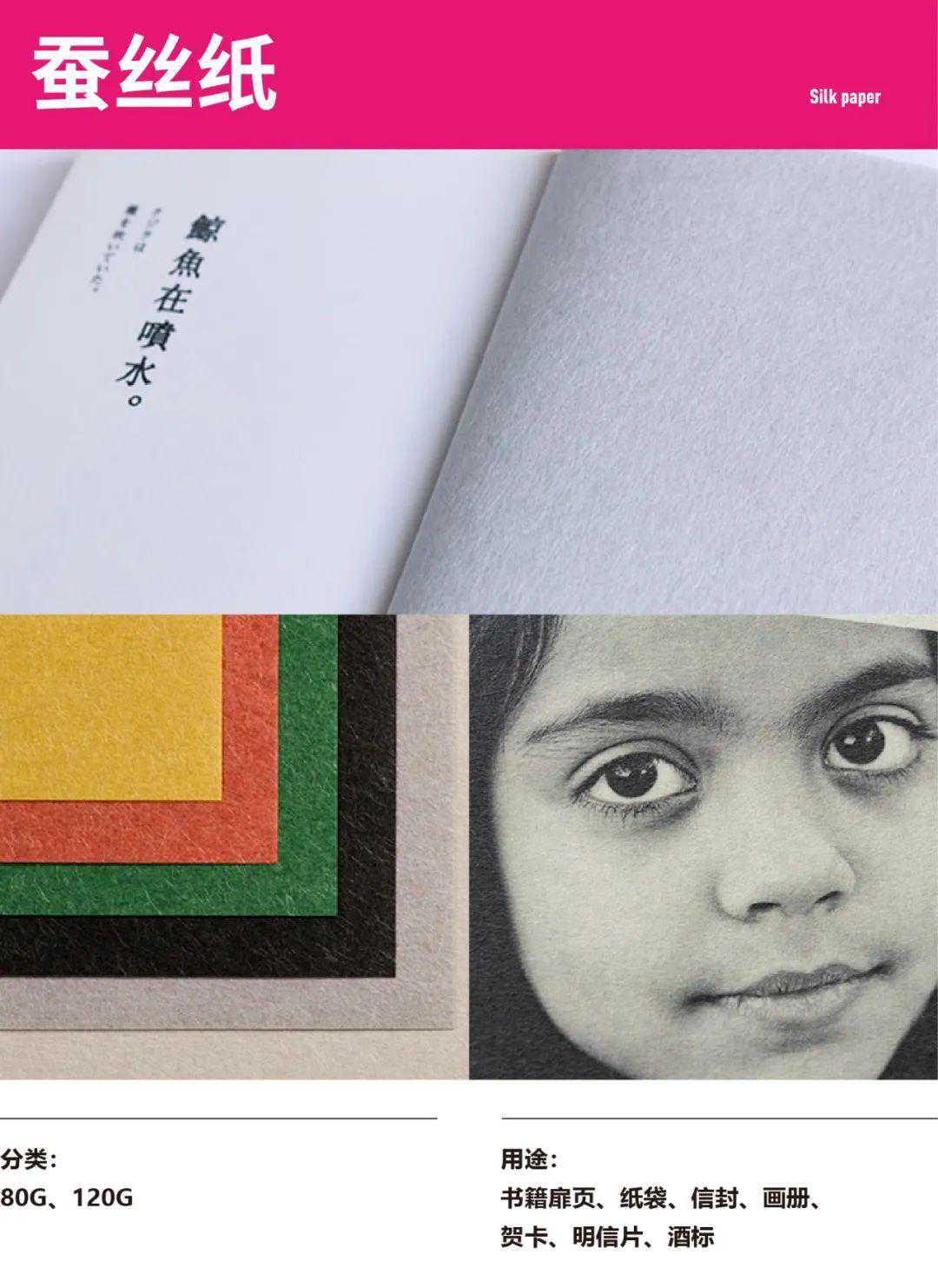 蛋壳纸其表面纹理细腻犹如蛋壳表面,颜色呈现真实柔和,多用于体现一个人的艺术家气质。蛋壳纹的有手感比较立体感一些。
