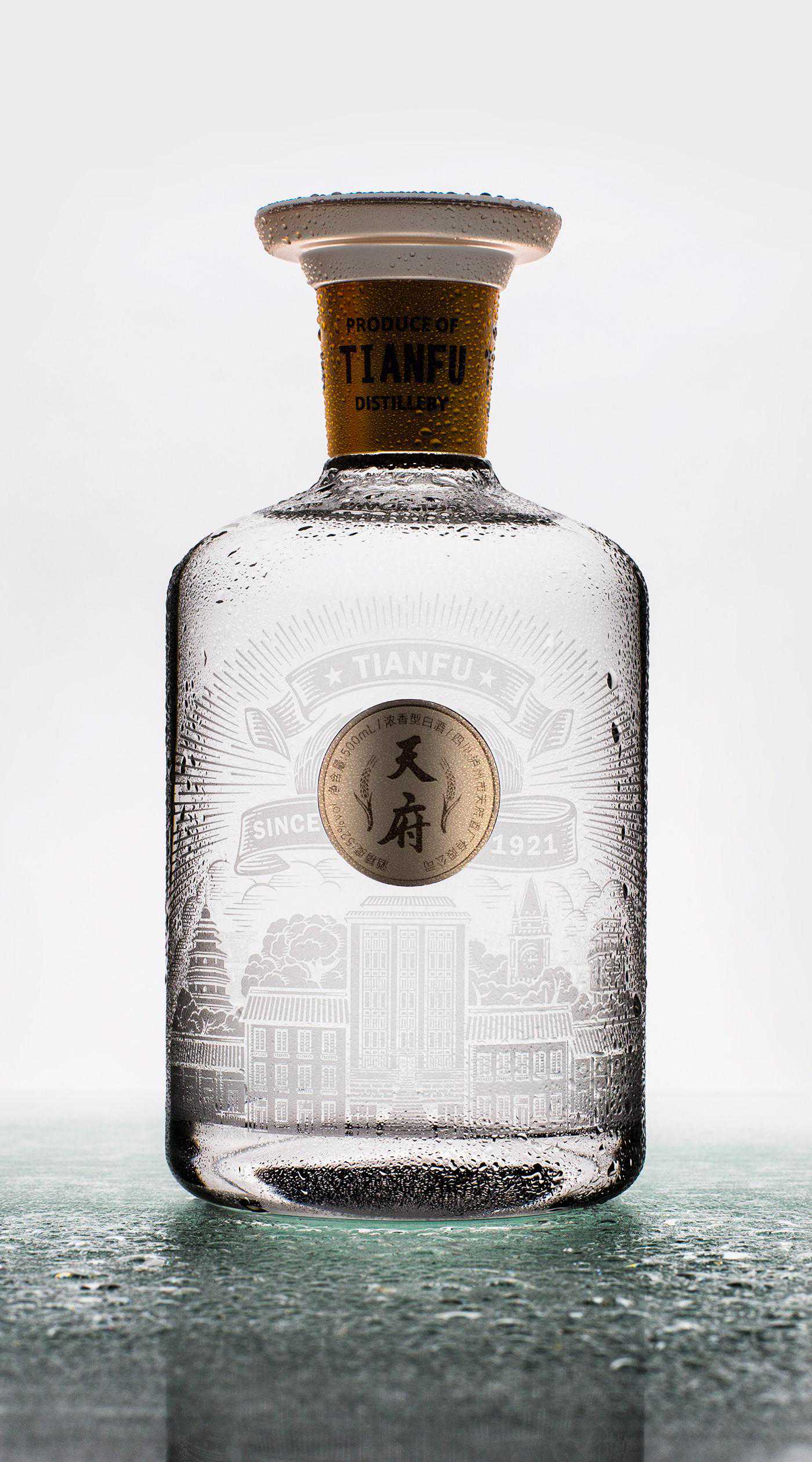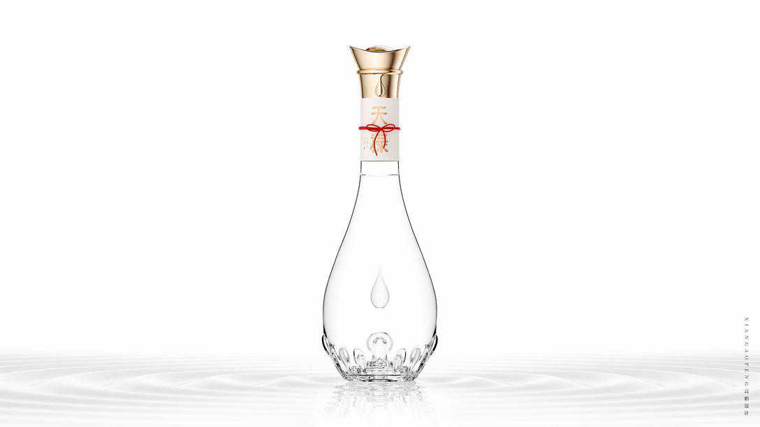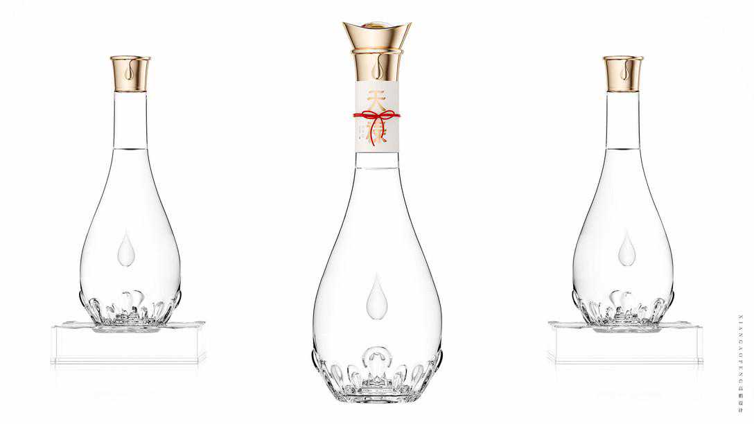 天禄译为天赐甘露,名称凸显酒的品质,包装亦呼应名称凸显特性,透明纯净的瓶身泛起层层涟漪,不用过多装饰尽显高贵。