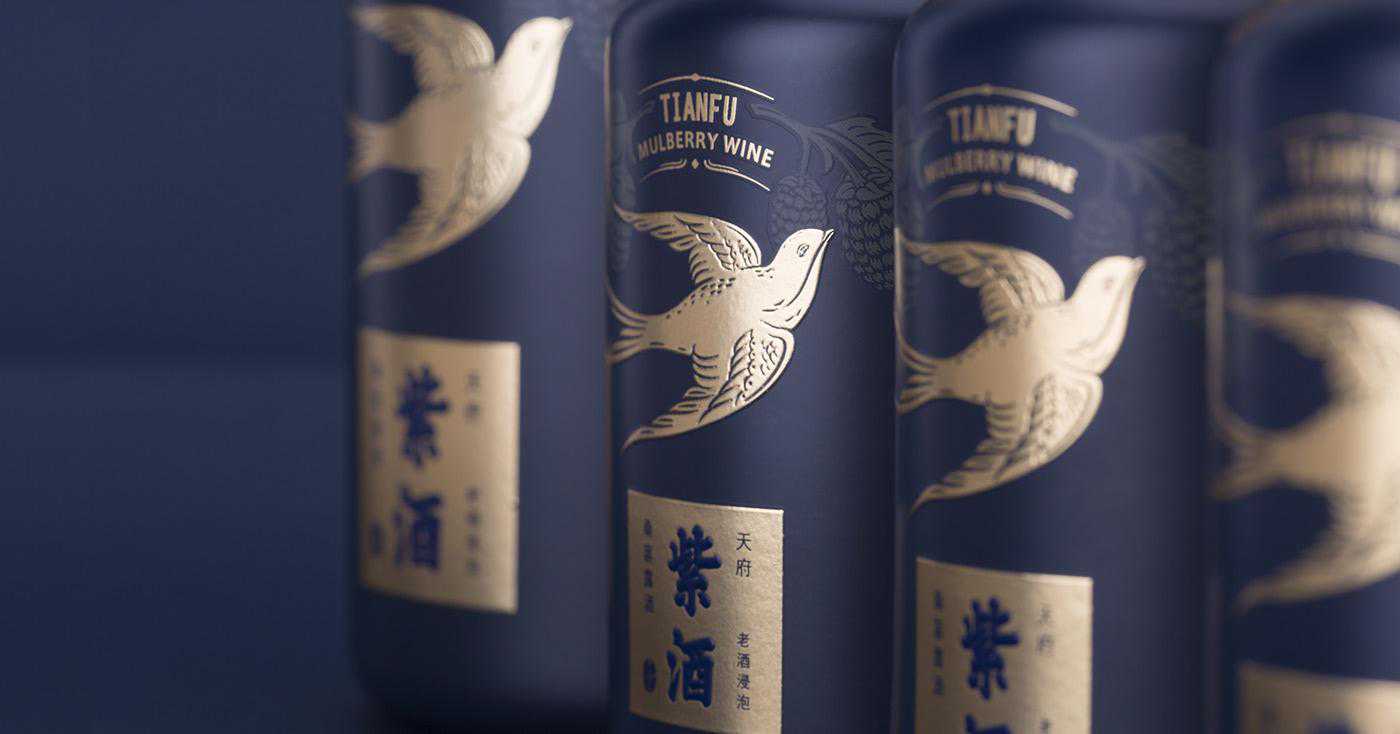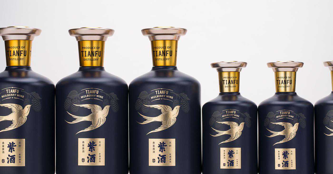 整体设计延续天府系列,瓶身“典雅紫”突出紫酒的桑葚成分。