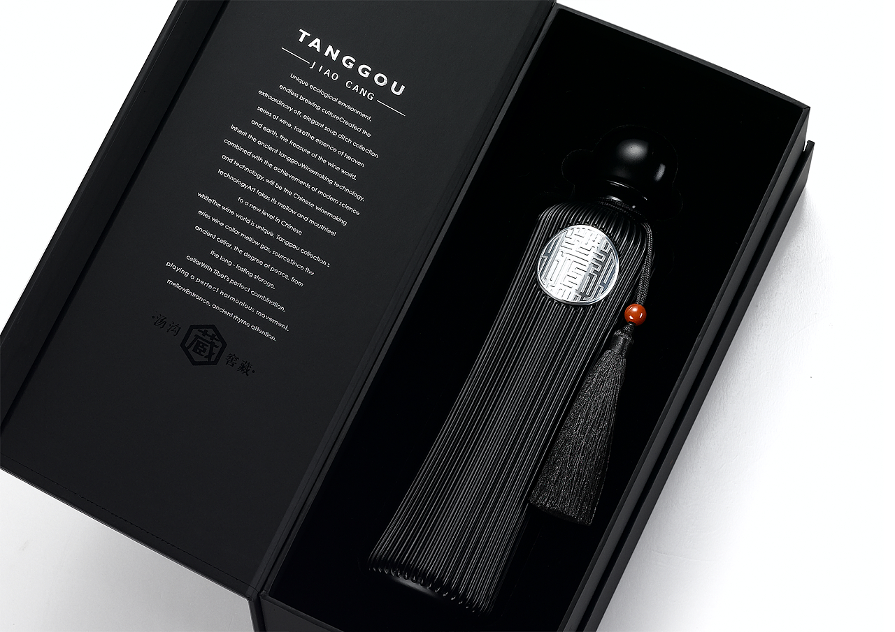 巧妙的将中国传统流苏和酒瓶设计相融合,把流苏飘逸流畅的线条感,运用到酒瓶的造型设计上。