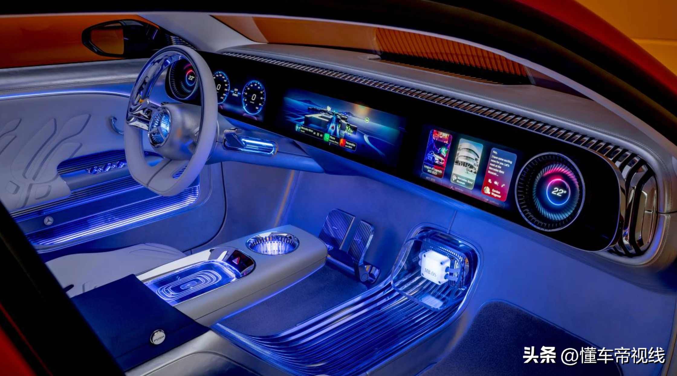 内饰方面,奔驰CLA级概念车配备有贯穿式大屏幕,这一设计灵感同样来自于奔驰EQXX概念车,在装饰细节和配色方面注重未来感的营造,且各个屏幕内饰的UI设计、3D图形都增强了未来主义氛围。