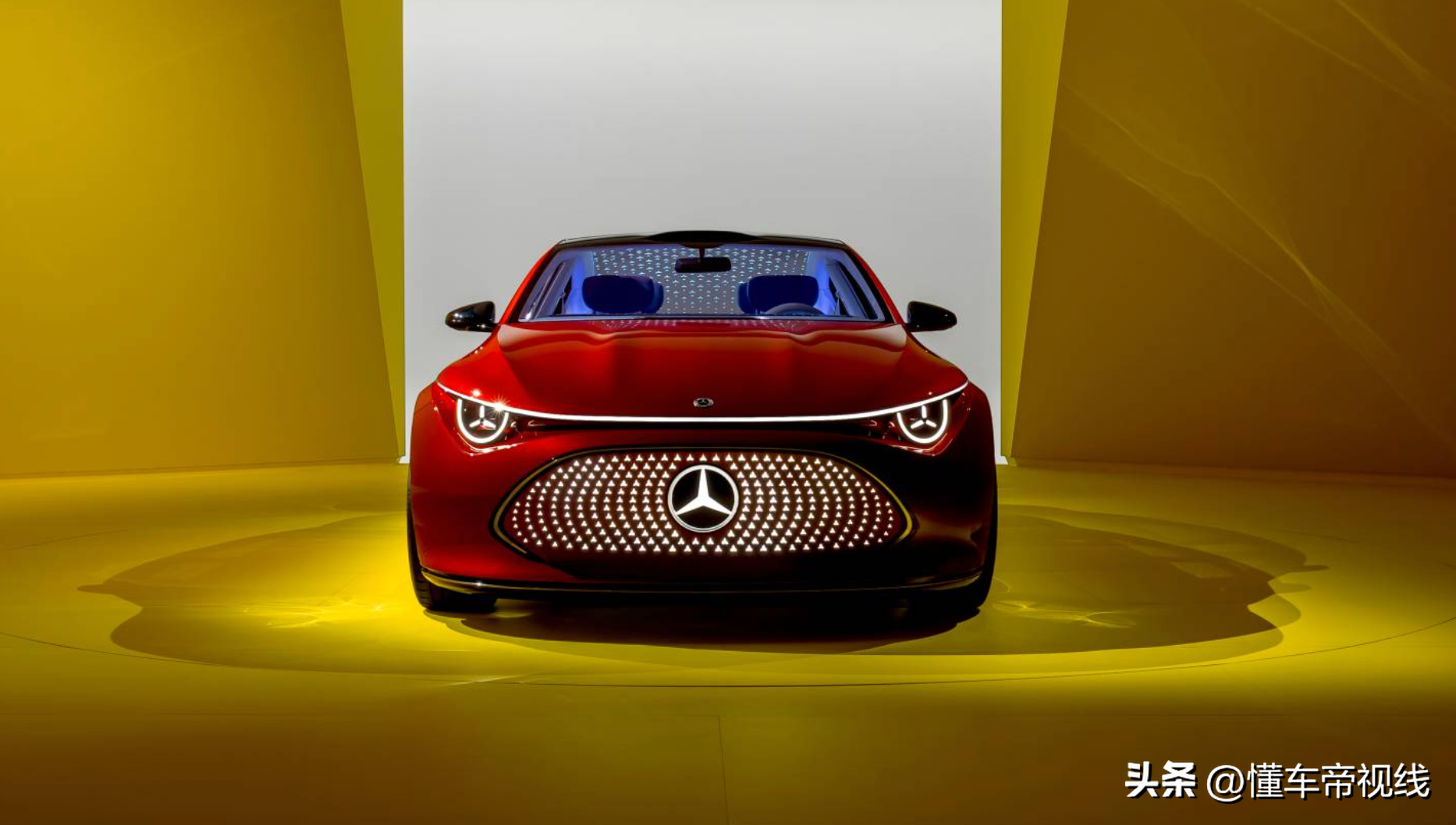 奔驰CLA级概念车的灯组设计语言与目前的EQ家族产品有所不同,灯组与“前中网”不再相连,并融入了贯穿式LED日间行车灯带,而灯组内部也应用了三叉星徽元素。同时,LED大灯的能耗也进一步降低。
