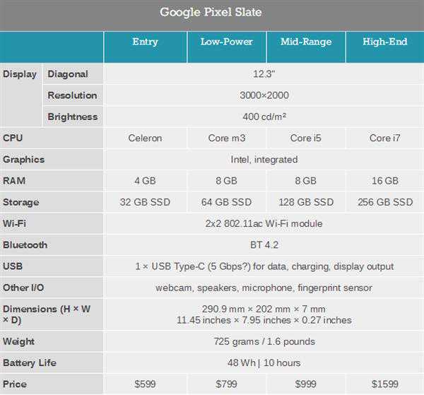PxielSlate提供四种配置级别,赛扬/4GB/32GB599美元(¥4150)、m3/8GB/64GB799美元(¥5530)、i5/8GB/128GB999美元(¥6910)、i7/8GB/256GB1599美元(¥11070),第一批今年底在美国、加拿大、英国等地上市。