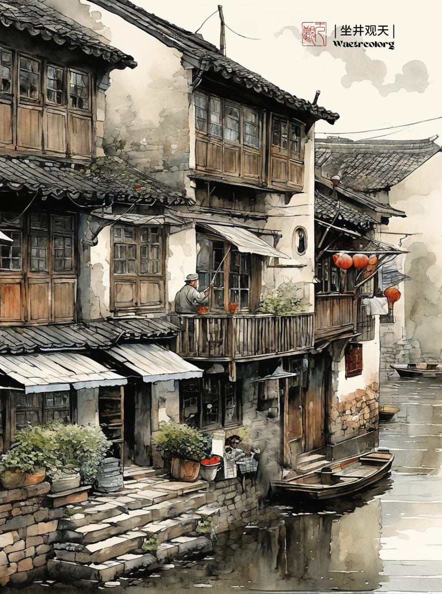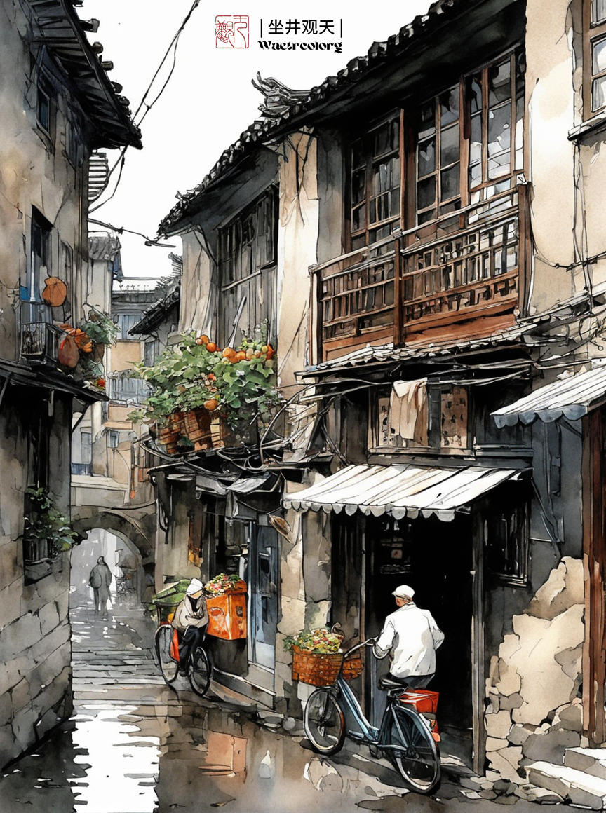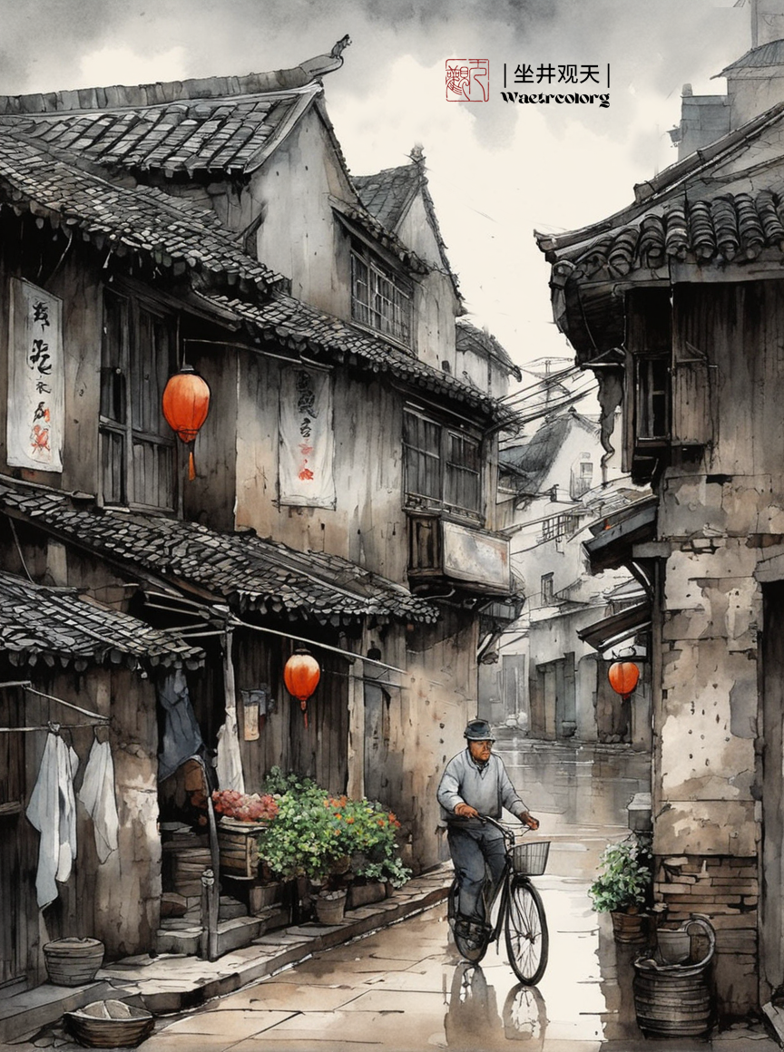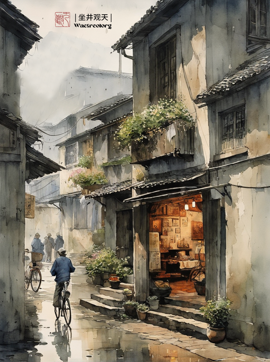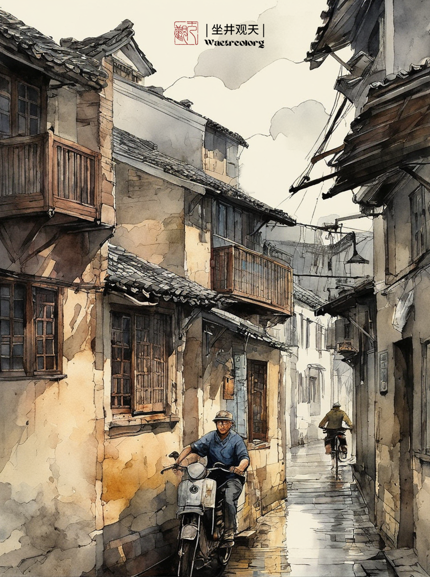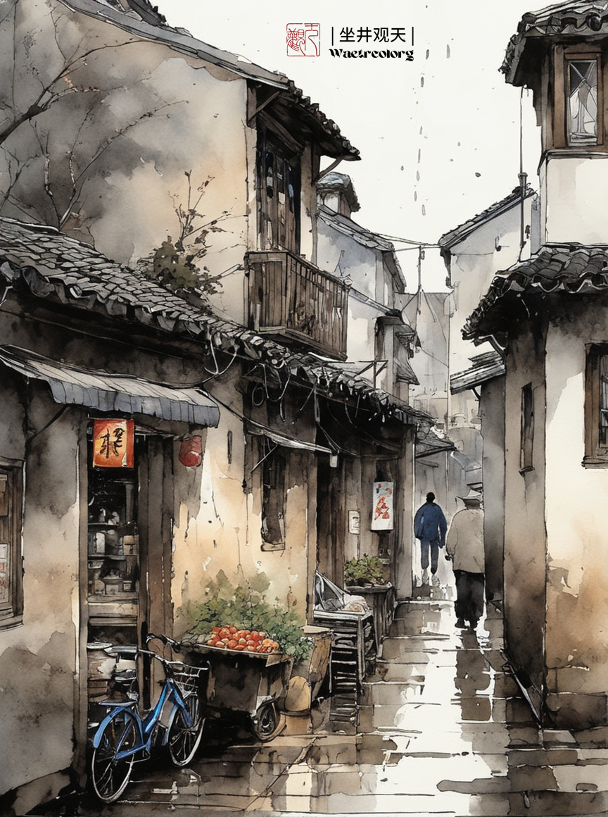 水彩风格AI绘画《姑苏小巷烟雨》分享。采用大模型,配以姑苏建筑lora模型文生图功能生成。操作参数:Steps:33,Sampler:DPM++2MKarras,CFGscale:7,Size:864x1160,Modelhash:6e0ba74ac1,Model:sdvn7Nijistylexl_v1,Lorahashes:"Suzhoualleyarchitecture-000003:e02f8a7cc0d0",Refiner:sd_xl_refiner_1.0_0.9vae[8d0ce6c016],Refinerswitchat:0.9,Version:。提示词:Watercolorartstyle,highlydetailedlinesreminiscentofKahnGriffiths,VadimKasim'stextures,CarlLarsson'scomposition,Suzhoualleywaystreets,bicycles,crowds,rivers,stoneBridges,boats,darkclouds,heavyrain,objects,FeaturingPASCALBlanche-stylesurrealistfigures,soft,elegant,dramaticlighting,grayscale,expressivecameraangles,mattefinishes,conceptart,,lora:Suzhoualleyarchitecture-000003:0.6。