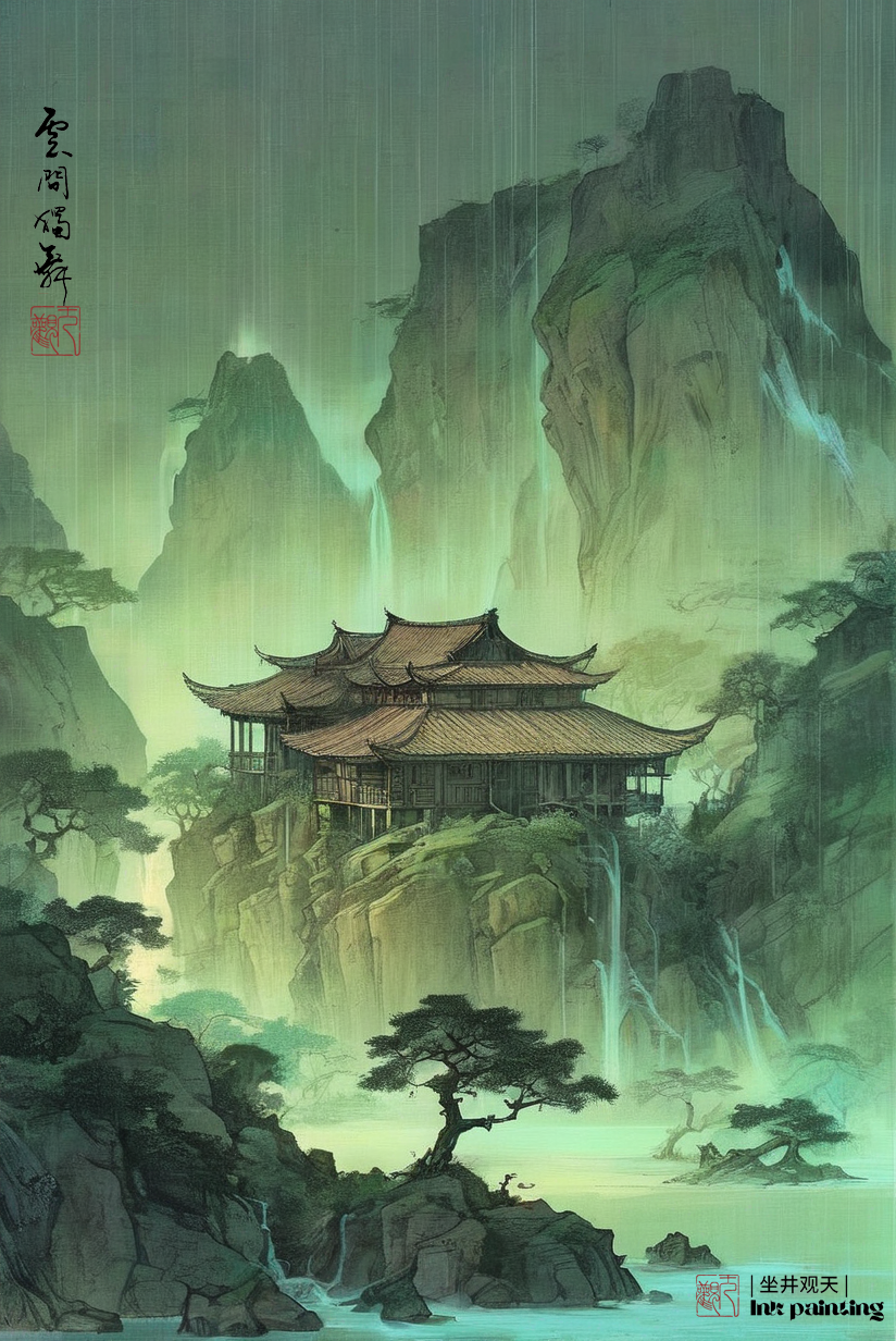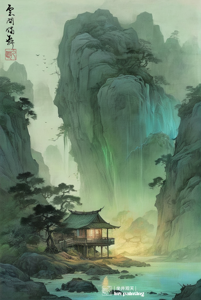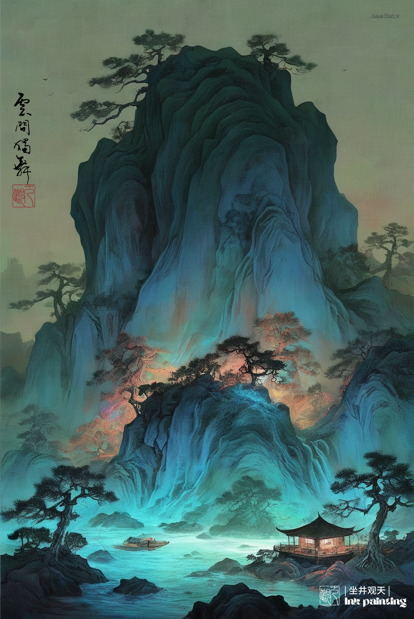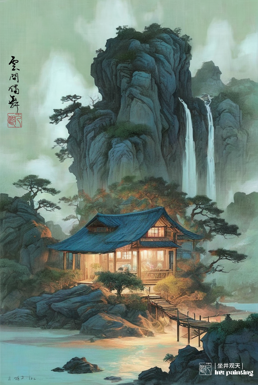 国韵山水《大山深处有人家》分享,采用水墨表现技法和西方绘画的绚丽色彩相结合,由stablediffusion软件软件生成。操作参数:Steps:44,Sampler:DPM++3MSDEKarras,CFGscale:8,Seed:3863348366,Size:824x1232,Modelhash:6e0ba74ac1,Model:sdvn7Nijistylexl_v1,Lorahashes:"Inkfreehandpainting-000004:3c61d76b511c,Chinesedecorativelandscapescenery-000002:9eea1a2e3446,Suzhoualleyarchitecture-000003:e02f8a7cc0d0",Version:提示词:水墨画杰作(戏剧性,强烈:1.4),山水风景夕阳,黄昏,夜色,巨石,悬崖,瀑布,湖水,建筑,老树,飞鸟,杰作,最好的质量,(巨石:1.2),(悬崖:1.2),32kuhd,疯狂的细节,复杂的细节,超级细节,超级质量,高细节,超级细节,杰作,yssk的新概念,景观背景,lora:Chinesedecorativelandscapescenery-000002:0.6,lora:Inkfreehandpainting-000004:0.5