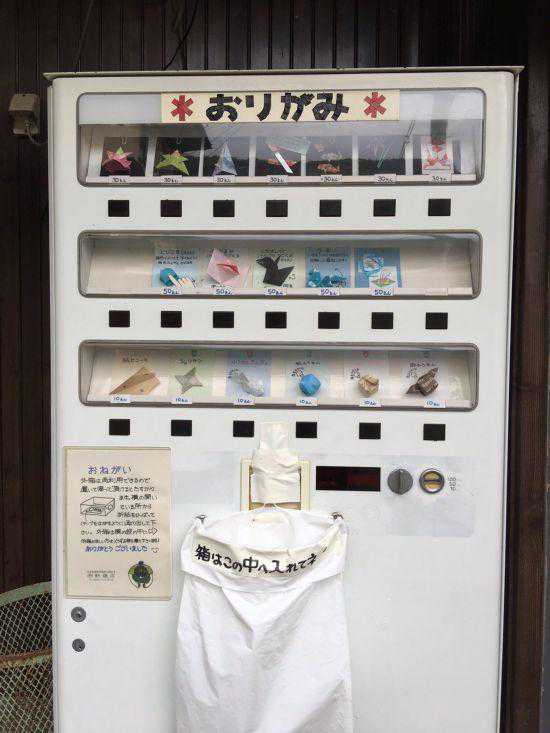 这台自动贩卖机的主人就是这家杂货店的店主冈野千鹤。最开始,这是一台销售香烟的自动贩卖机。但是从2008年开始,她开始在里面摆上折纸,开拓了一项新生意。