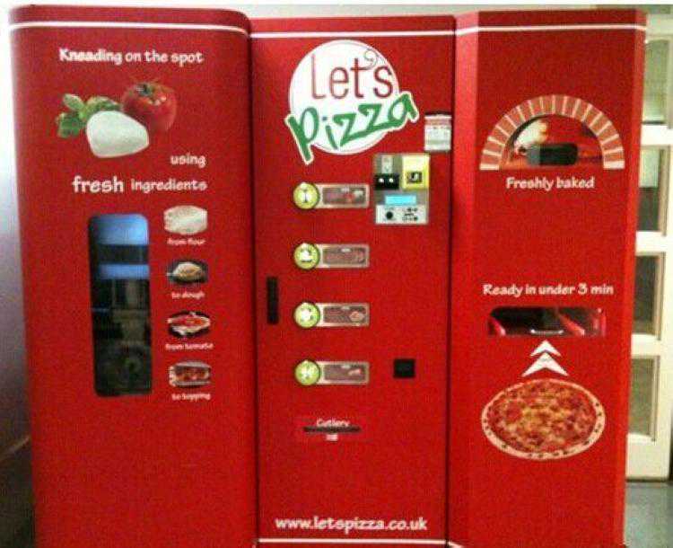 这间制作墨西哥卷饼的公司还制作了披萨自动贩卖机,使用烤箱在90秒内做出一张10英寸的披萨。